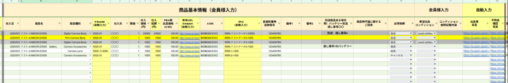 | 仕入総額(円) | 自動で反映されます。仕入れ個数×仕入れ価格になります。 |
