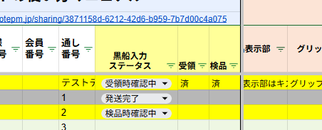黄色:受領時確認中、検品時確認中