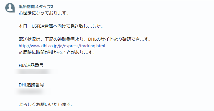 発送完了後、チャットワークにて追跡番号のご報告させていただきます。
