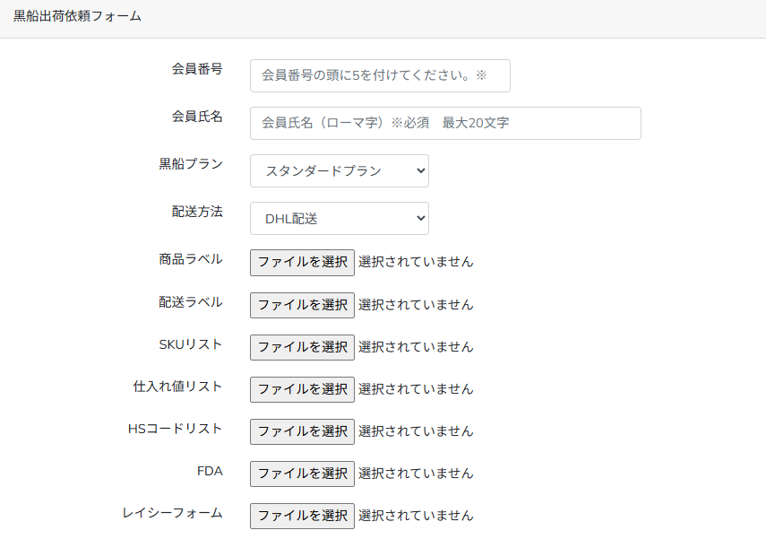 発送依頼フォームの入力方法について