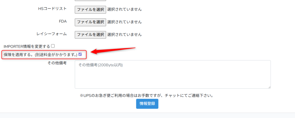 【保険を適用する。(別途料金がかかります。)】にチェックを入れてください。