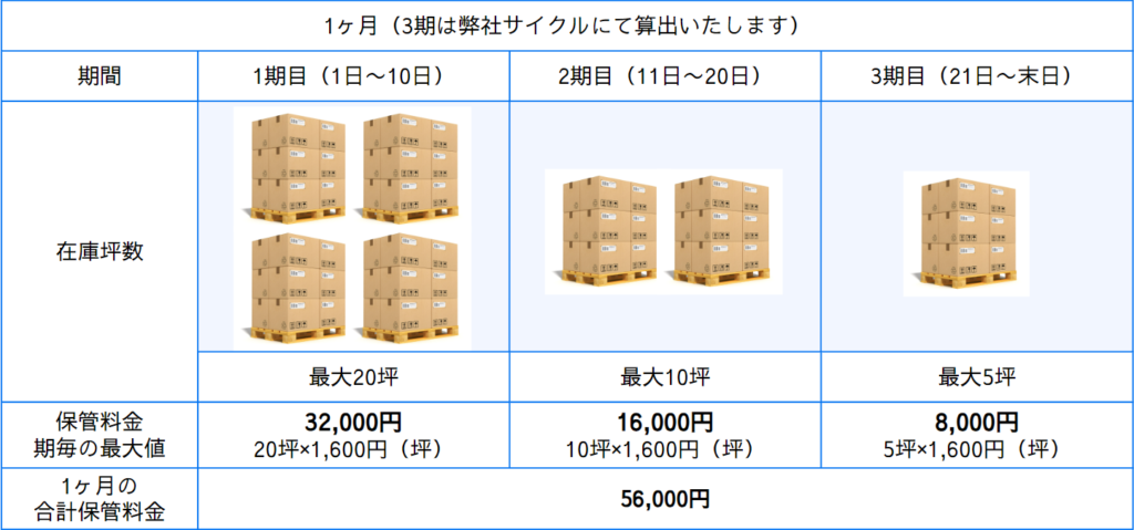保管スペース(保管料金は1ヵ月を3期に分けて算出いたします。)